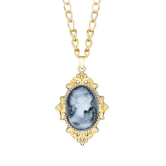 Collier Pendentif Camée "Reine Florale Vintage" ( 9 couleurs )