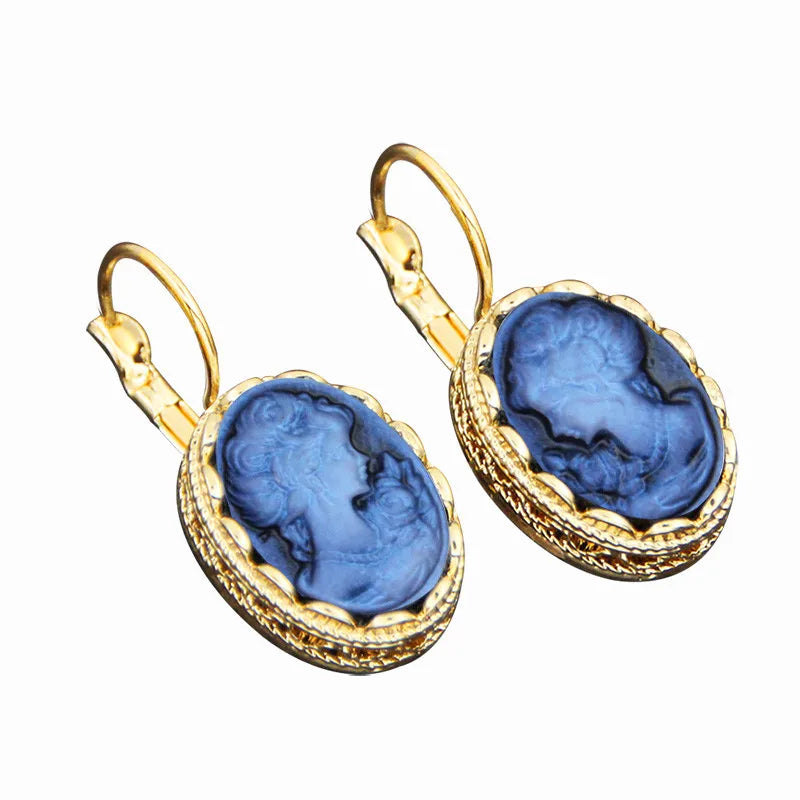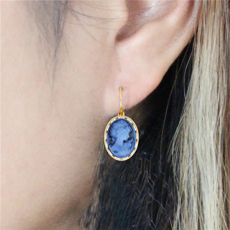 Matériaux de qualité : Fabriquées avec un camée en résine et un crochet en cuivre, ces boucles d'oreilles sont à la fois durables et esthétiques. Le pendentif en alliage de zinc plaqué en couleur or ajoute une touche de luxe.